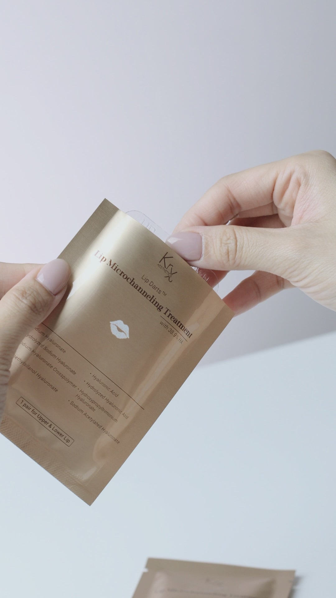 KrX's Lip Darts are a microchanneling treatment for the lips. Each patch contains active ingredients suspended within soluble spears. When applied to the lips, the microneedle-like spears create microchannels, increasing the absorption of ingredients.